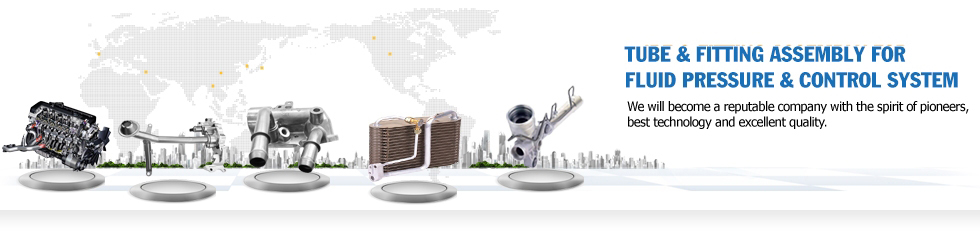 Powertrain, Oil Pickup Tube, Power Pump, Air Conditioning, Power Steering, Machined Part & Press Part, Machined Part, Press Part, Coolant Tube, FUEL Supply, EGR Tube, Transmission Cooler(TOC) Tube, Tube Assembly for Transmission Oil Spray, Pressure Sensing Tube, Transmission for Hose & Tube Assembly, Return Tube Assembly, Fitting Assembly, Union, 90˚Return Tube Assembly, Tube Assembly for Vacuum Pump, Water Pump, Fluid Control Tubing for Heater, Fluid Control Tubing for Condenser, Fluid Control Tubing for Cooling Module, Fluid Control Tubing for Air conditioning Hose Assembly, Machined part, DHTube, DH tube